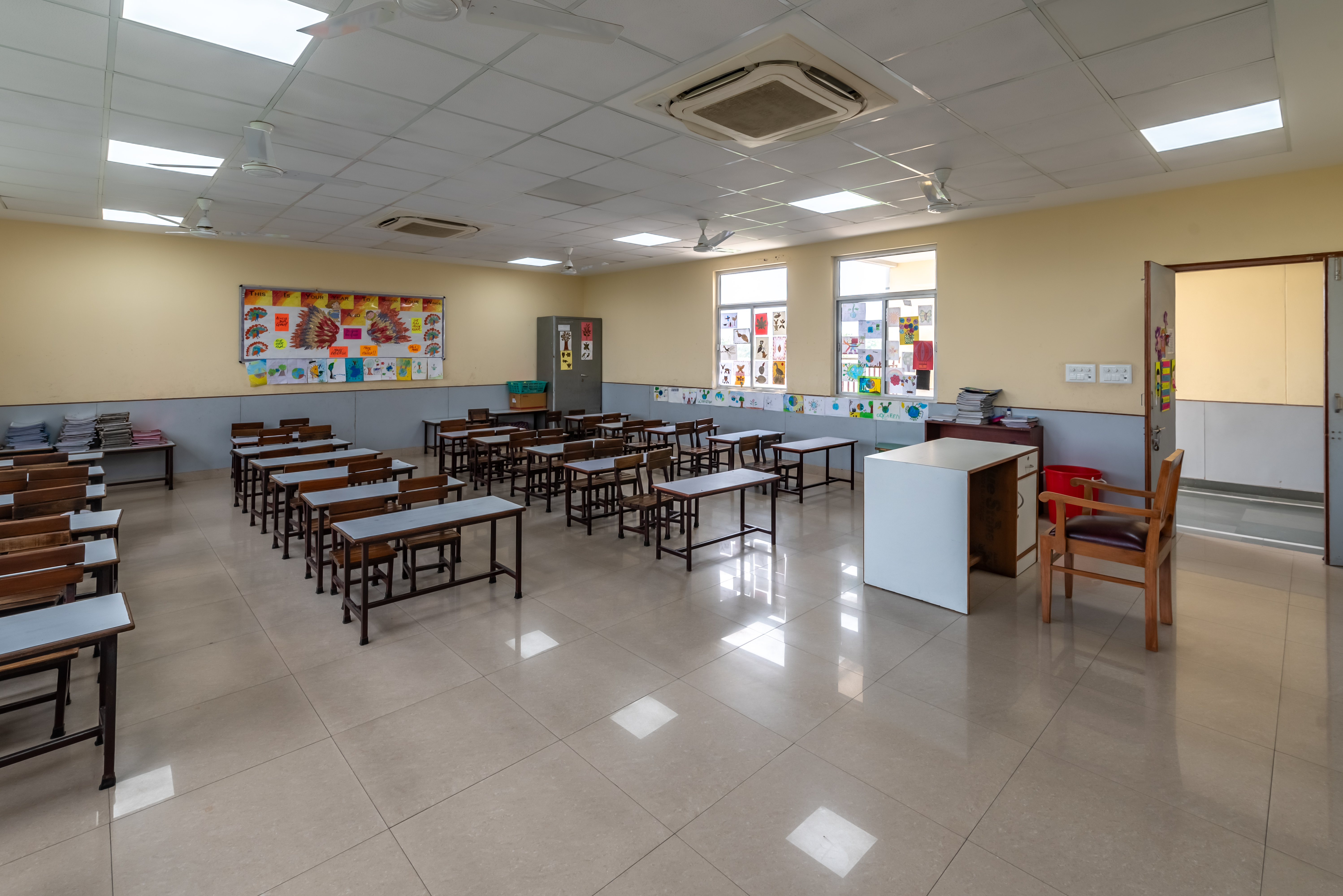 The DPS Vasant Kunj planning to construct a new floor to the top of their junior block presented a special difficulty for Delhi Public School Vasant Kunj. Classic RCC construction was impractical because to the unstable foundation of the previous structure. The additional level, which covered an area of around 20,000 square feet, needed careful planning and implementation. The installation of a VRV system for effective air conditioning marked the beginning of the project.