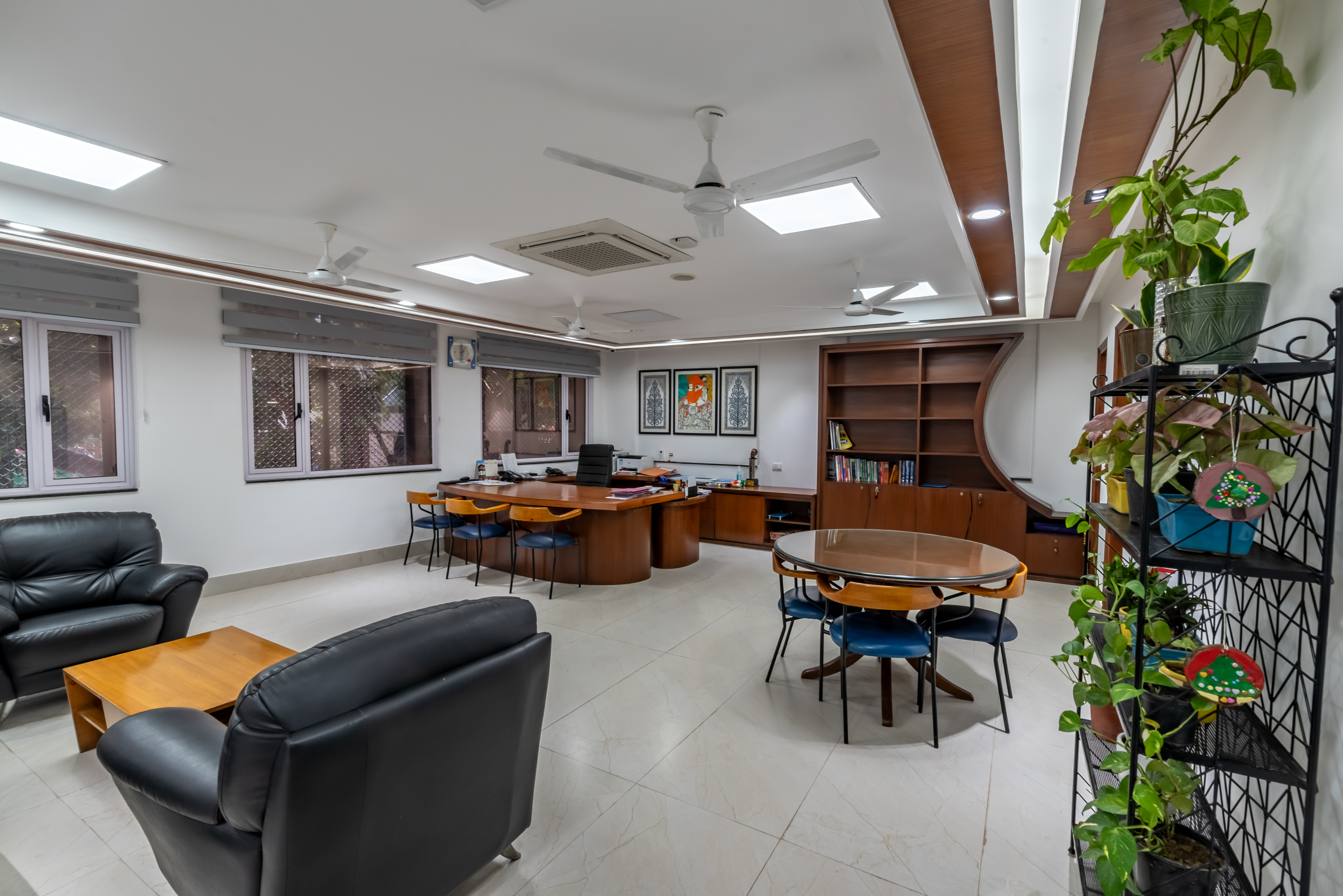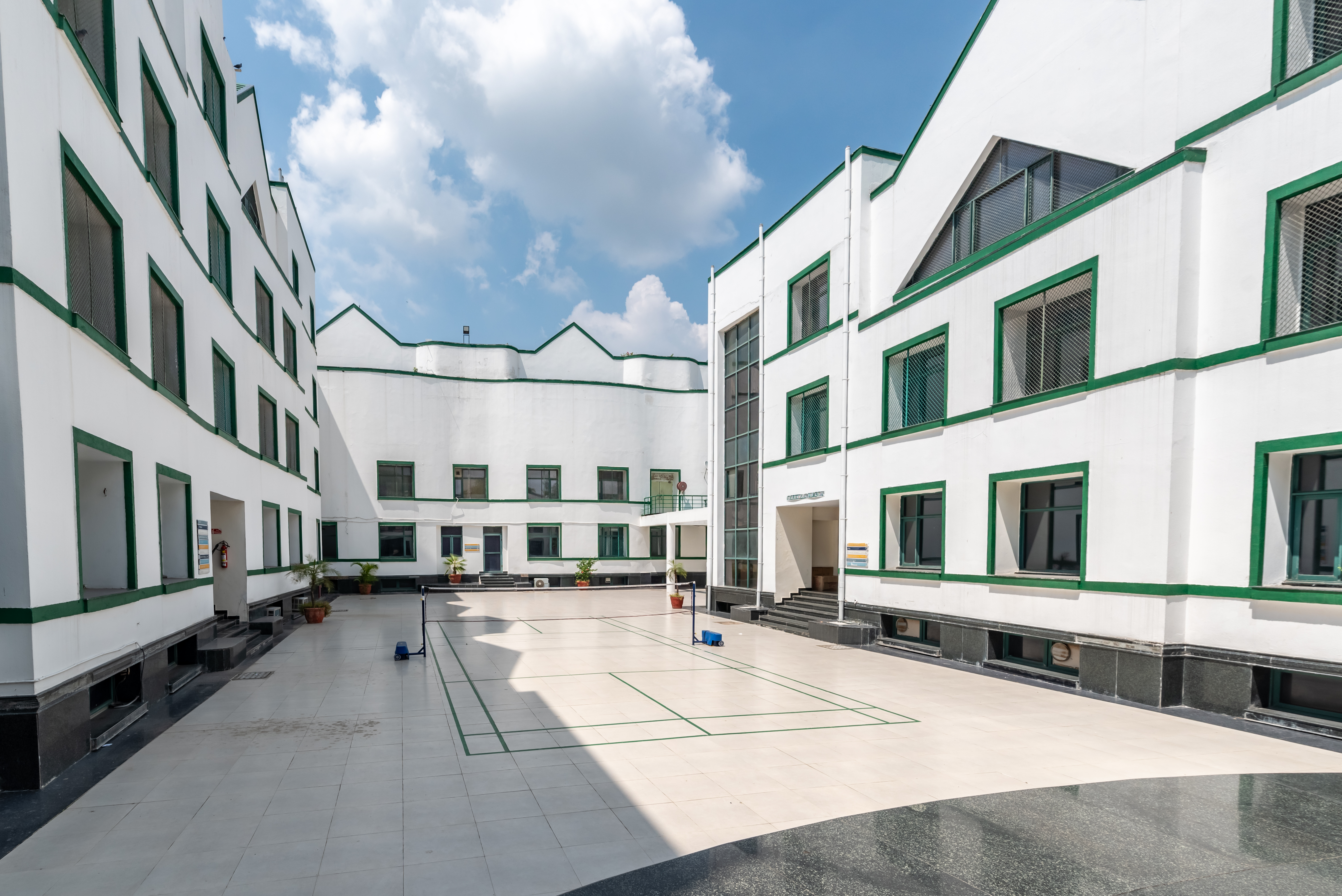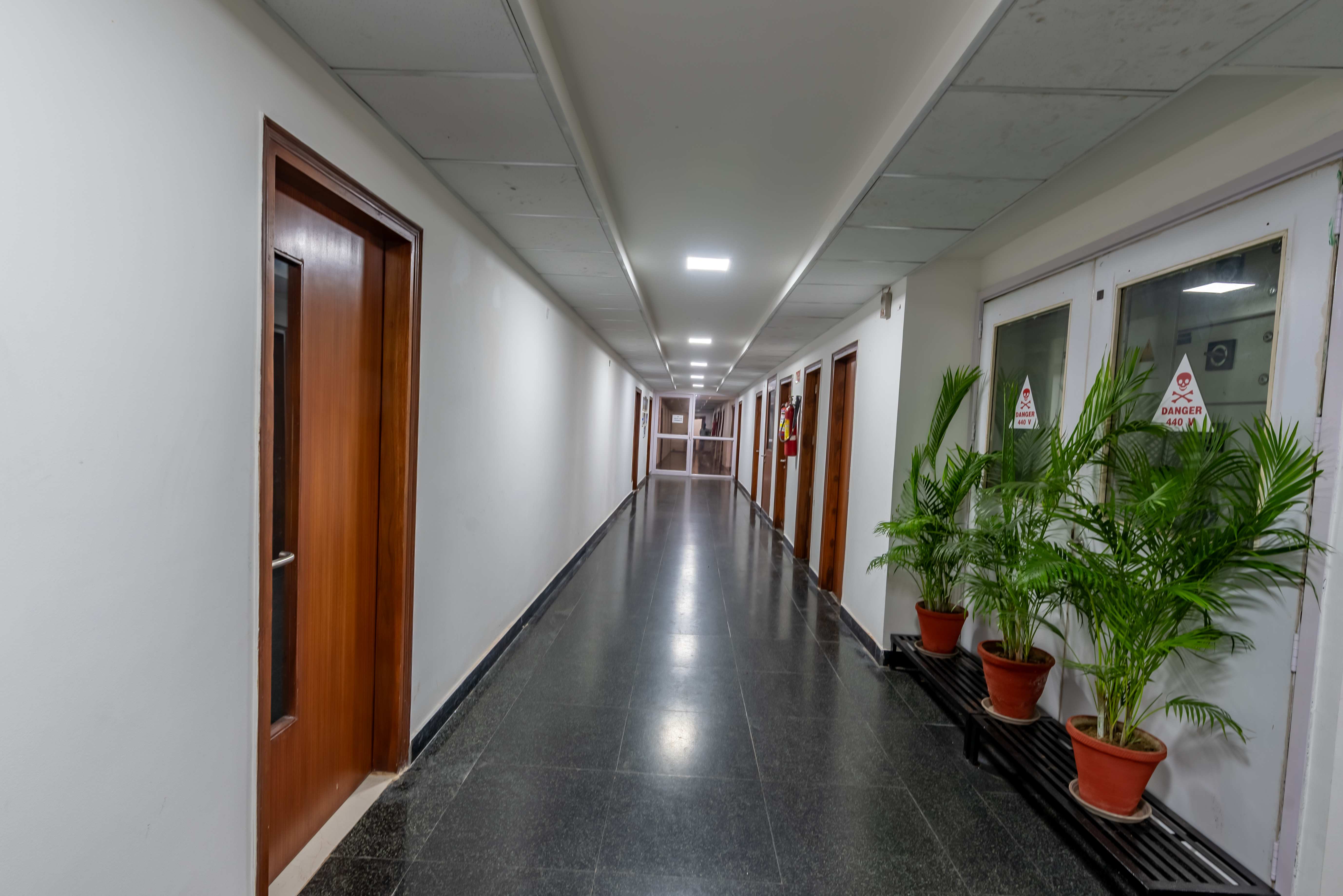 After, Saluja Contracts installed a new drainage system and removed the granite from the central courtyard, we dismantled the admin block, completed networking, electrification, and IT setup, redesigned and finished the flooring, and installed a veneered false ceiling.